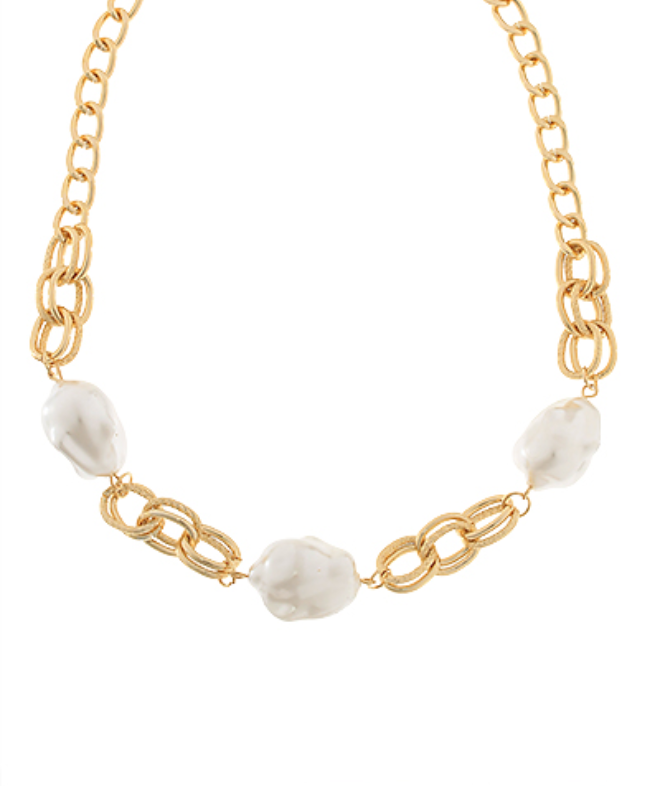 Imperfect Pearl & Textured Chain Necklace