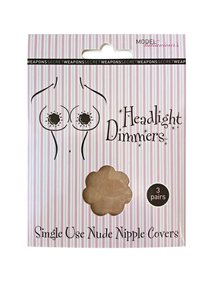 Our single use Nipple Covers are disposable, thin flower shape nipple covers. Soft satin nipple covers in a nude skin colour are designed to prevent your high beams attracting more attention than your smile. We’ve included 3 pairs in every pack. Perfect for a backless dress, you can go braless in comfort! *3 Pairs of Single Use Nipple Covers per pack *Super thin, nude polyester nipple covers with a soft satin finish *Centered nipple pad for maximum comfort USING YOUR Headlight Dimmers Single Use Nipple Covers: *Never apply over broken, damaged or sun-burned skin *Clean the area of moisturisers and powders before applying *After use, gently peel the product away or soak off using warm water * If redness or irritation occurs please discontinue use immediately.