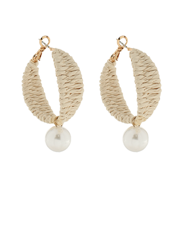 Pearl Dangle Rattan Hoops