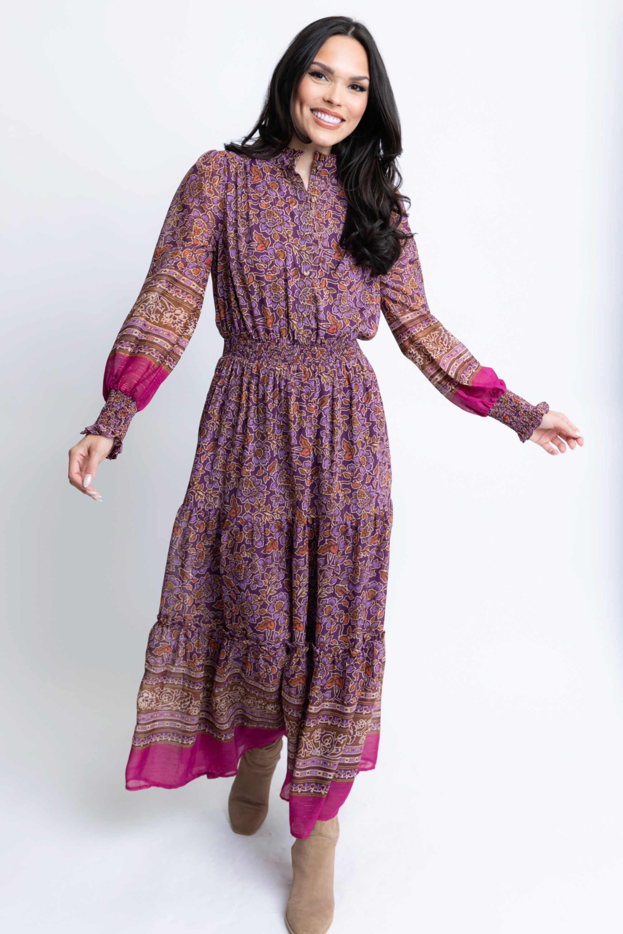 Floral Chiffon Metallic Thread Maxi Dress